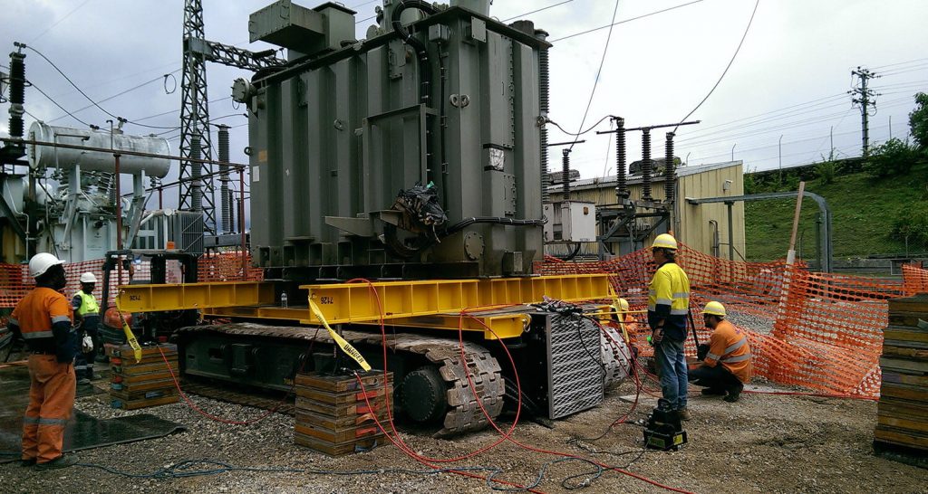 30 ton load skates were used to manoeuvre the transformer into position.