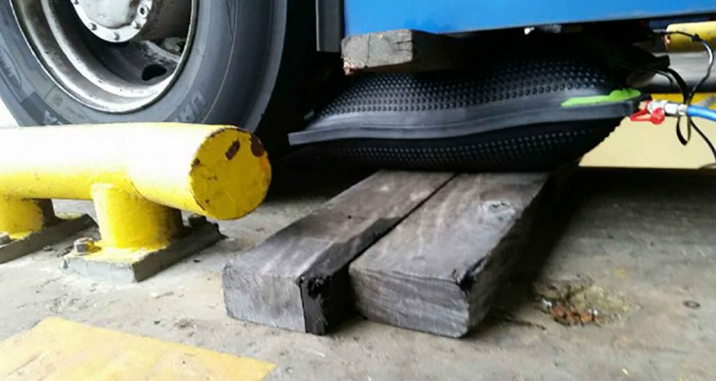 Several 25.2 tonne (KPL25) and 33 tonne (KPL33) airbags were used for the application. The majority of the standard buses tare weights were around 9.5 tonne.